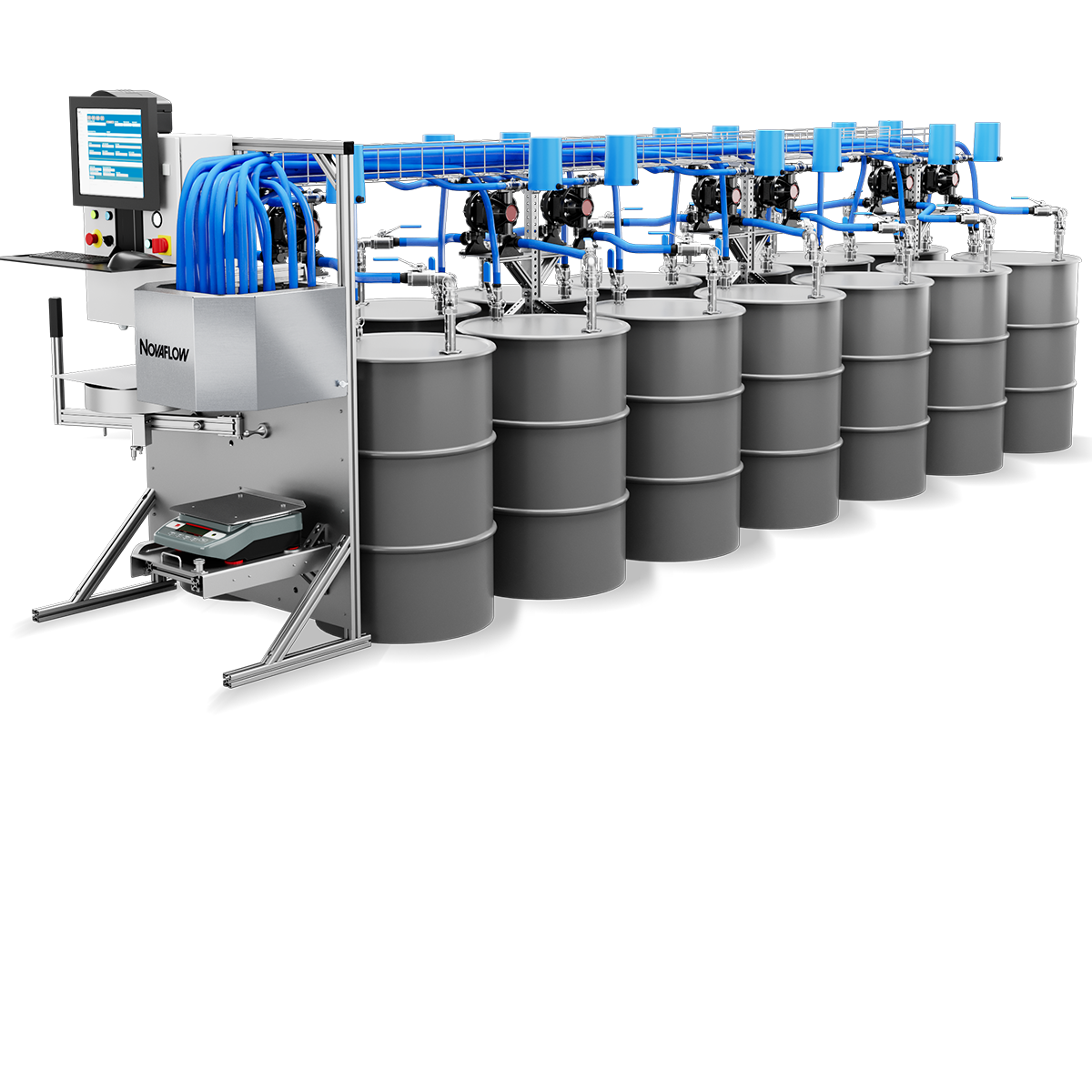 Utilizing robust diaphragm pumps, products are drawn directly from source containers. Three configurations with different source container arrangements are available to meet specific production needs—see reverse side for details.